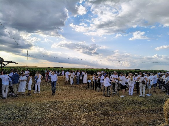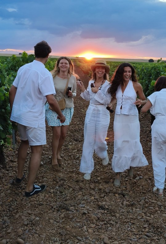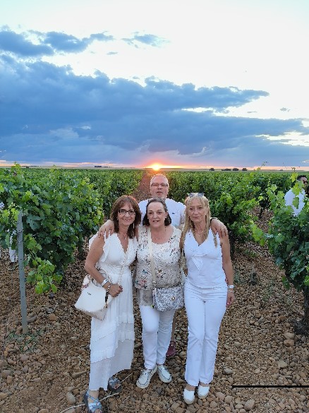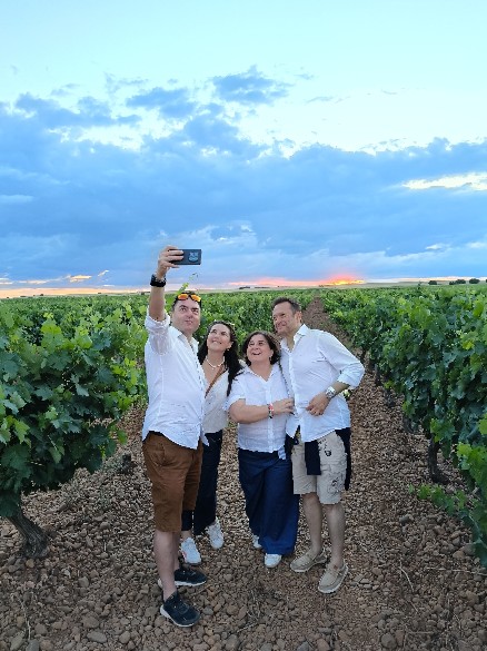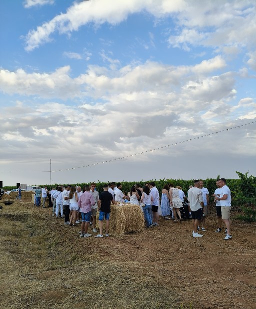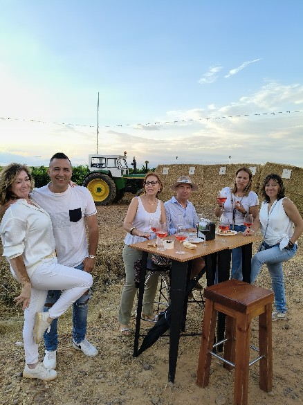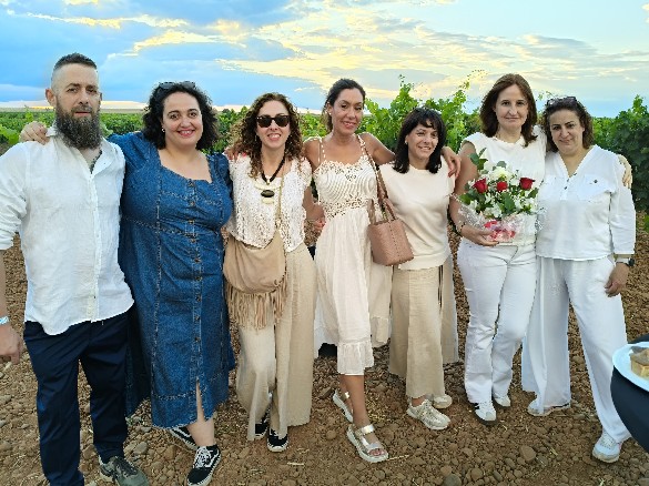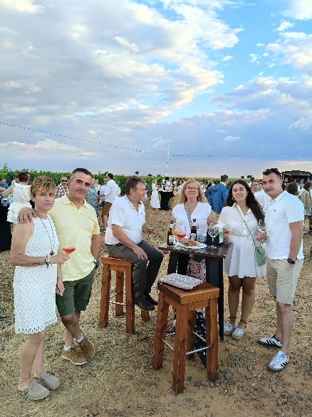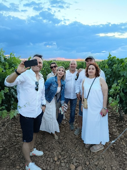 A las puertas de nuestra bodega nos reuniamos para partir todos juntos hacia La Costana, un paraje único entre cepas bañado con la luz dorada del atardecer auguraban una noche mágica.