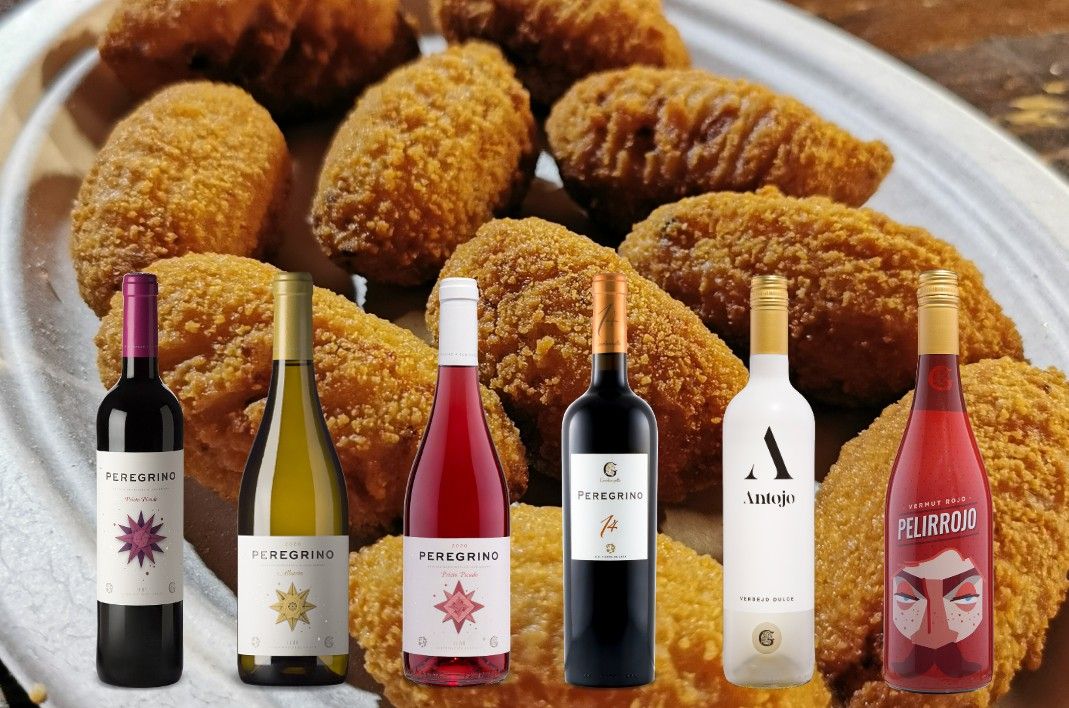 -Croquetas de pollo: Estas croquetas, que también son muy fáciles de encontrar, resaltan por su suavidad en cuanto a sabor, por lo que su pareja perfecta sería un vino muy afrutado y aromático, como Peregrino Rosado. Este vino presenta aromas a fruta roja, tiene un agradable paso por boca, una acidez equilibrada y un ligero amargor propio de la variedad, por lo que su maridaje con las croquetas de pollo es perfecto.
