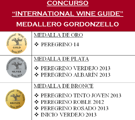 MEDALLERO OBTENIDO POR LOS VINOS PEREGRINO EN EL CONCURSO "INTERNATIONAL WINE GUIDE"