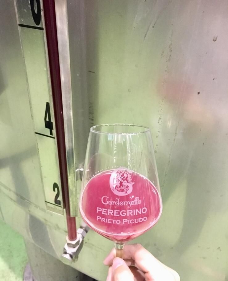 Nuestro rosado de gama alta GURDOS que todavía esta conviertiendo todo ese azúcar presente en su mosto mediante el proceso de fermentación en vino...