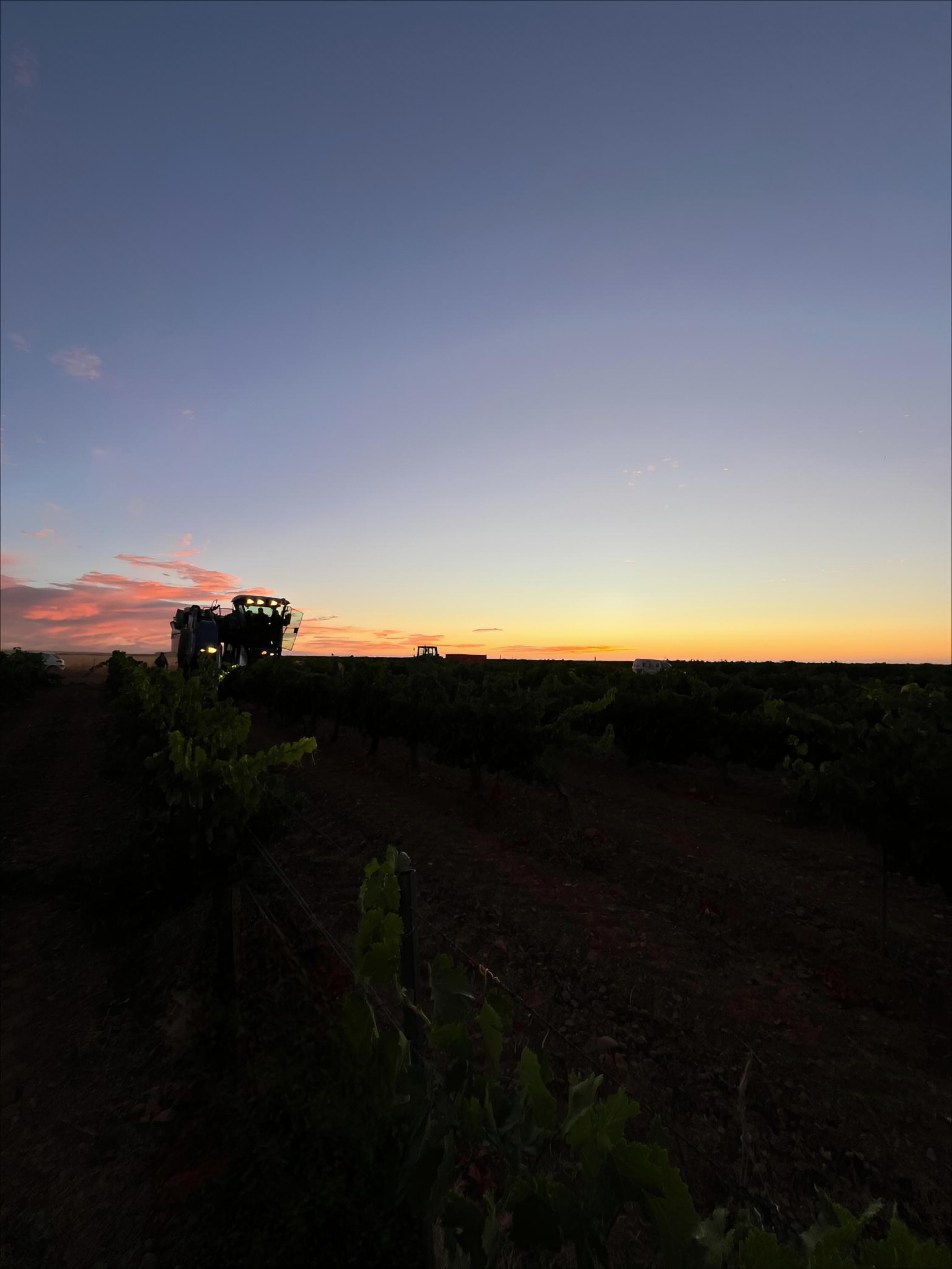 Durante la noche y primeras horas del día, las vendimiadoras autopropulsadas recorren las hileras de viñedo, vibrando suavemente las cepas para desprender los frutos maduros. La uva se deposita en su interior y de ahí pasa a los remolques, que la trasladan con rapidez a la bodega para preservar toda su frescura y calidad.