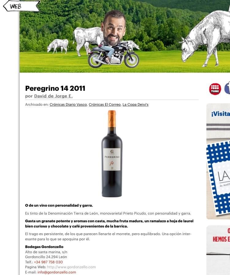 a hecho mención esta mañana de nuestro PEREGRINO TINTO 14 en su instagram y su página web.