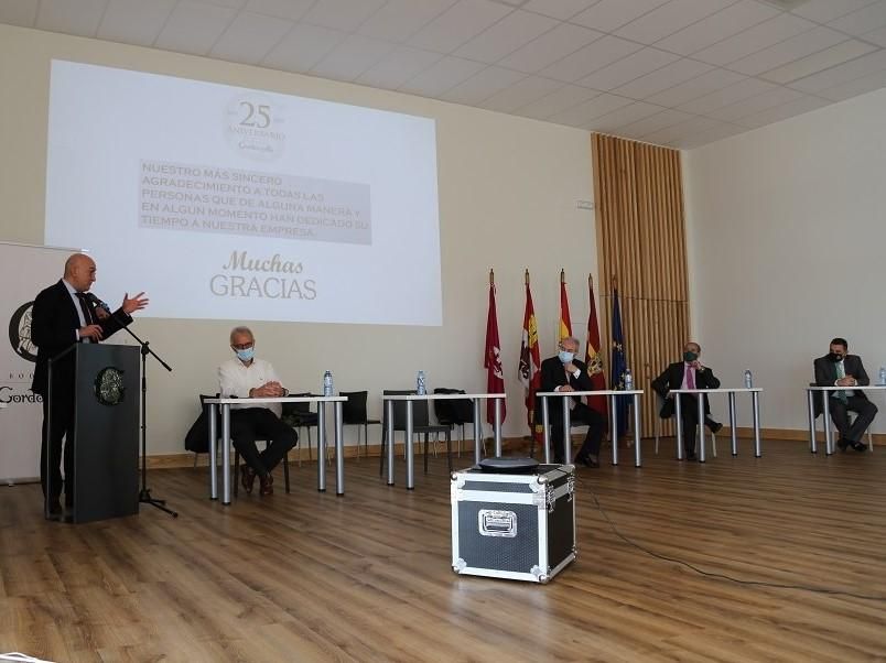 El Consejero de Agricultura, Ganadería y Desarrollo Rural de la Junta de Castilla y León, Jesús Julio Carnero, presidió el pasado viernes al Acto de Clausura del 25 Aniversario de Bodegas Gordonzello. El evento, titulado “El sueño de todo un pueblo”, en el que Jesús Julio Carnero valoró el trabajo realizado en estos 25 años ya que, según nos dijo, “sois un ejemplo de desarrollo en el medio rural, de reivindicar el pasado para crear riqueza y construir el futuro y de unión por un objetivo común: el de revitalizar el medio rural”.