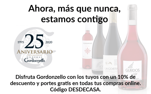 Con ese espíritu en mente hemos lanzado la campaña “Ahora, más que nunca, estamos contigo”, que pretende facilitar el que puedas seguir disfrutando de Gordonzello con los tuyos. Para ello hemos incluido el código de descuento DESDECASA que rebaja todos nuestros vinos un 10% en nuestra tienda online y además ofrecemos gratis el transporte hasta tu casa.