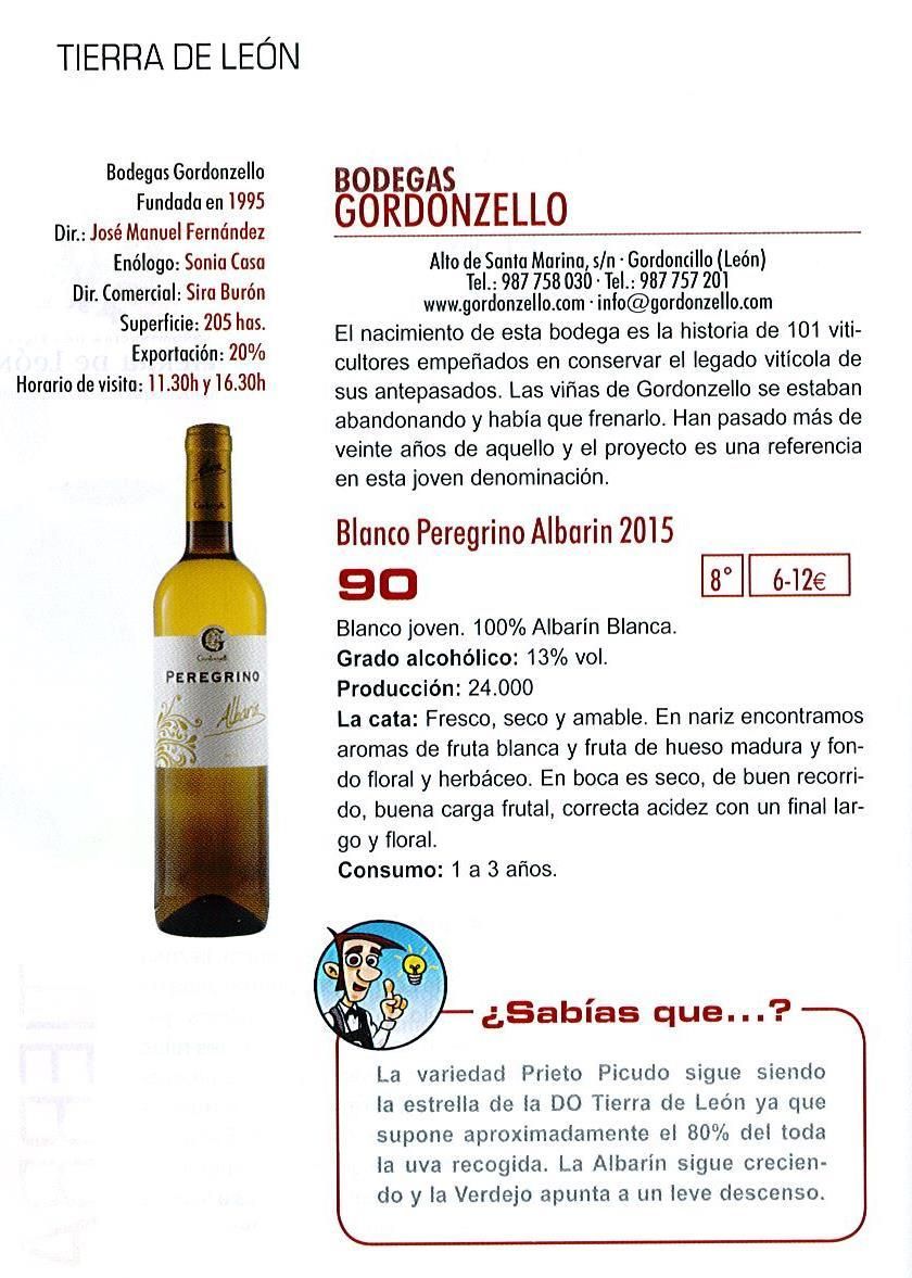 Este año nuestro PEREGRINO ALBARÍN es el ÚNICO vino de la D.O. TIERRA DE LEÓN que está seleccionado para esta guía.