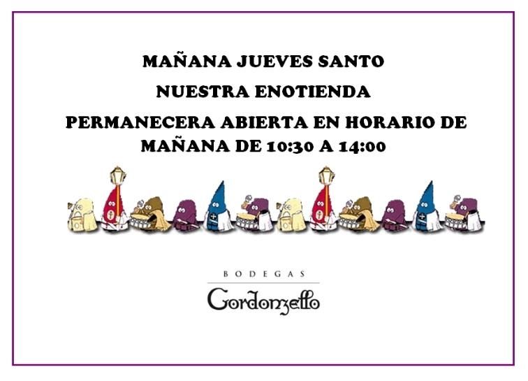 Nuestra enotienda permanecerá abierta mañana en horario de mañana de diez y media a dos,