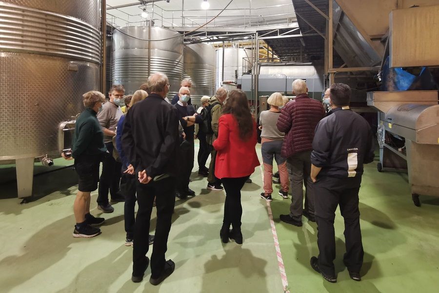 Este grupo danés de distribuidores y amantes del vino, acompañados de la responsable de enoturismo y de nuestro enólogo, recorrieron la nave de elaboración donde les informaron sobre los diferentes procesos de elaboración, la sala de envejecimiento, donde se encuentran las barricas con diferentes tamaños, maderas y tostados, así como los jaulones; también, la zona de embotellado con capacidad para el embotellado de 4.800 botellas a la hora y las nuevas instalaciones funcionales enfocadas al enoturismo y la celebración de todo tipo de eventos.