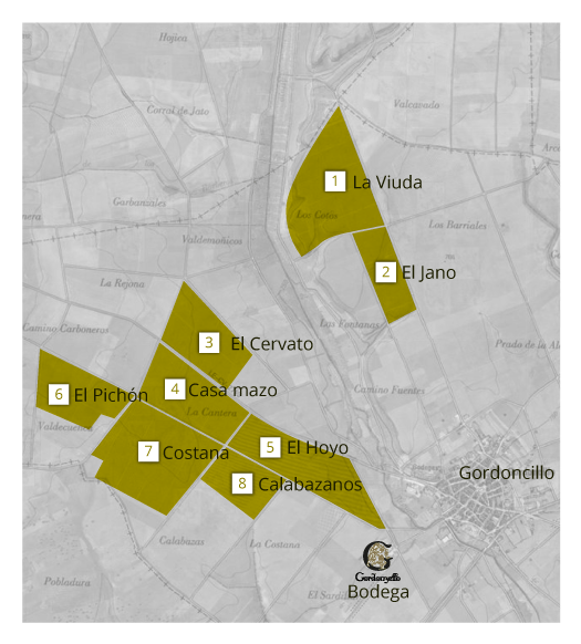 Nuestros viñedos se encuentran situados a 750 m de altitud en el municipio de Gordoncillo, dentro de la DENOMINACIÓN DE ORIGEN LEÓN, en la parte más al sur, lo que nos garantiza una calidad y maduración óptima de la vendimia, por tener más horas de sol y mayor temperatura.